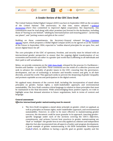 Here we provide comments on the GDC Zero Draft, released by the process Co-Facilitators—