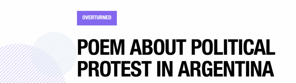 En junio de 2025, el Consejo Asesor de Contenido de Meta seleccionó el caso de una persona usuaria de Instagram que interpuso dos apelaciones contra la censura de un poema político publicado en el marco de las movilizaciones sociales en Argentina durante el mes de enero. La publicación consistía en un carrusel de imágenes con texto en español que, en conjunto, formaban un poema con tono crítico y lenguaje artístico frente al contexto sociopolítico del país. El post llamaba a la protesta social luego del discurso del Ejecutivo durante el Foro Económico Mundial en Davos y frente a los retrocesos en materia de Derechos Humanos y libertades fundamentales en ese país, especialmente de la comunidad LGBTIQA+ y las mujeres en toda su diversidad.