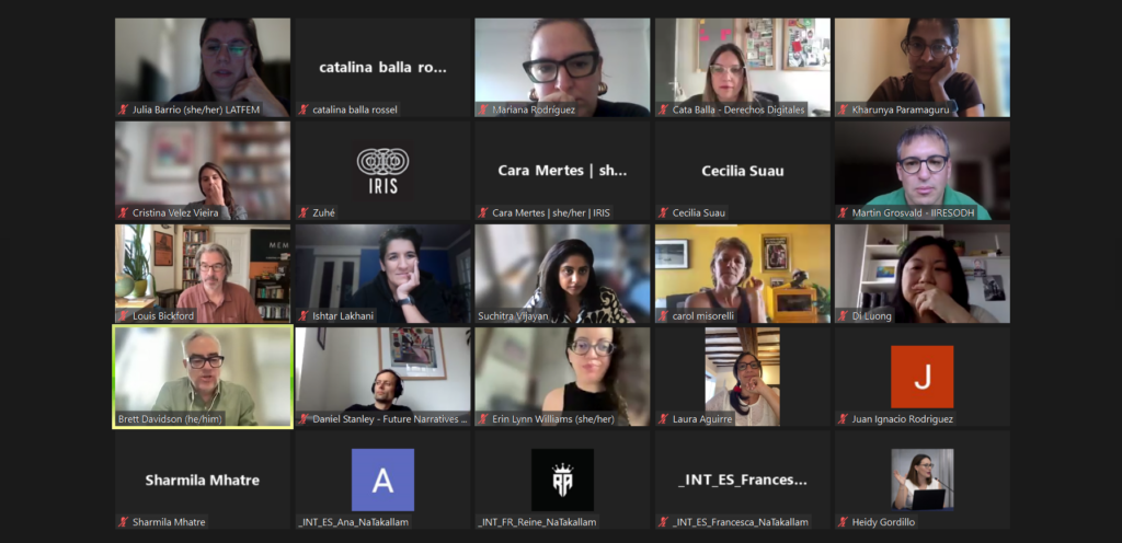 El encuentro reunió a organizaciones de distintas regiones del mundo para compartir estudios de caso que exploran cómo la sociedad civil está enfrentando y reconfigurando las narrativas en torno a la tecnología. En el panel principal participaron Derechos Digitales, IIRESODH, The Equality Hub y The Polis Project, abordando experiencias situadas en América Latina, África y Asia.