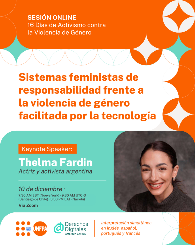 En el marco de los 16 Días de Activismo contra la Violencia de Género, UNFPA y Derechos Digitales compartiremos los resultados de nuestro trabajo conjunto sobre violencia de género facilitada por tecnologías, así como propuestas para fortalecer los sistemas de rendición de cuentas.